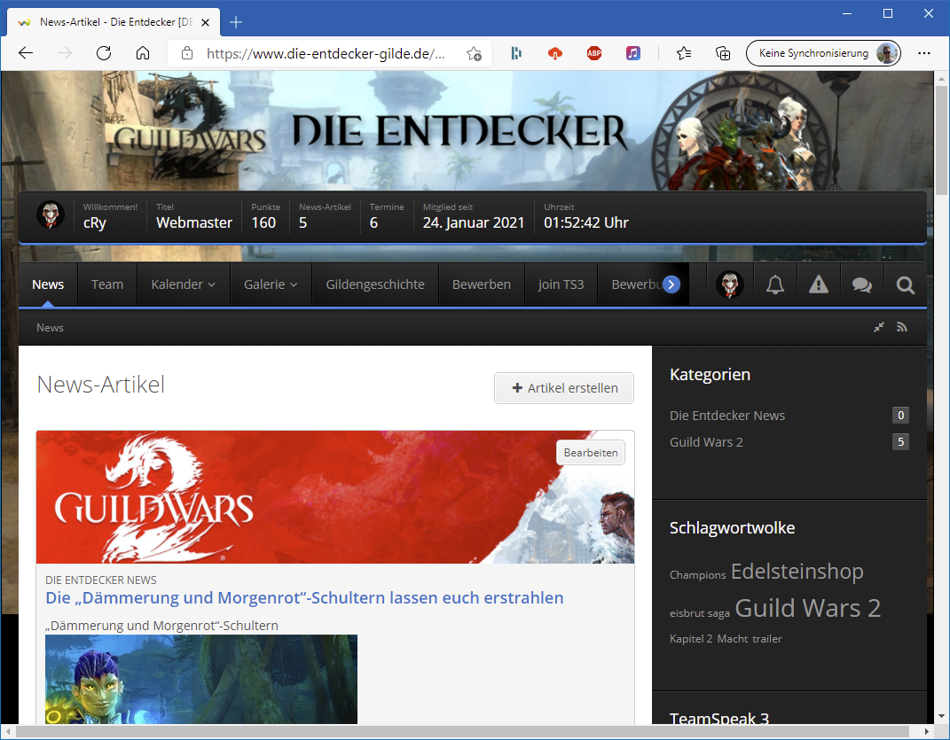 Unsere neue Gilden-Webseite wurde kurzfristig und aus der Not heraus aus dem Boden gestampft.