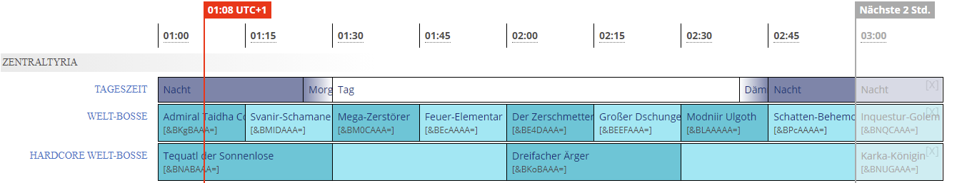 Im EventTimer findet Ihr die wichtigsten Zeiten zu Events und Weltbossen. Über die Links erfahrt Ihr mehr Informationen über das jeweilige Event direkt bei der Guild Wars 2 Wiki.